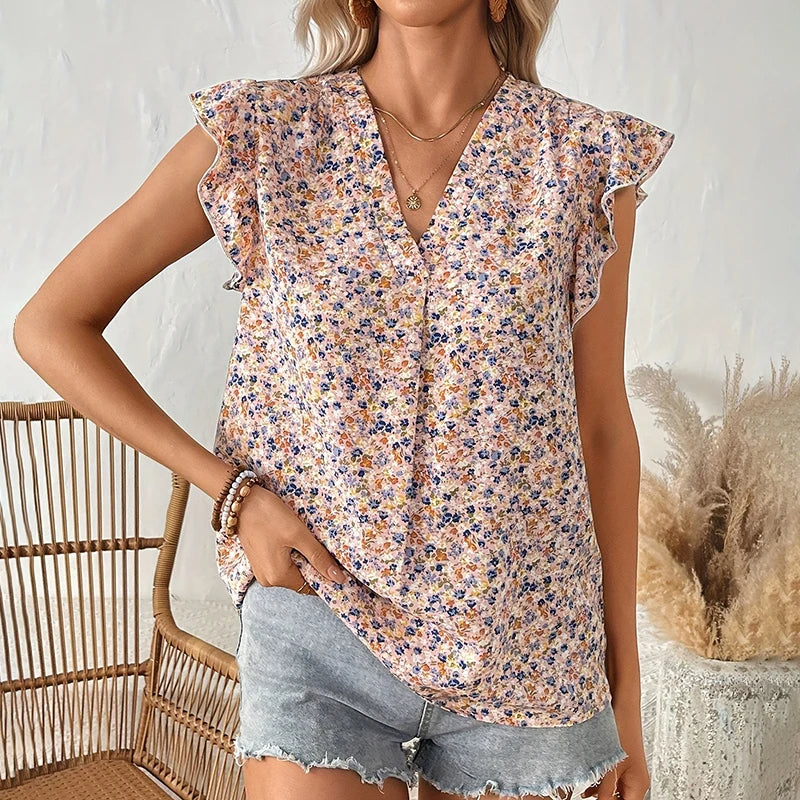 Flare Sleeve Floral Shirt for Women – Summer Chic Casual Blouse Outfit