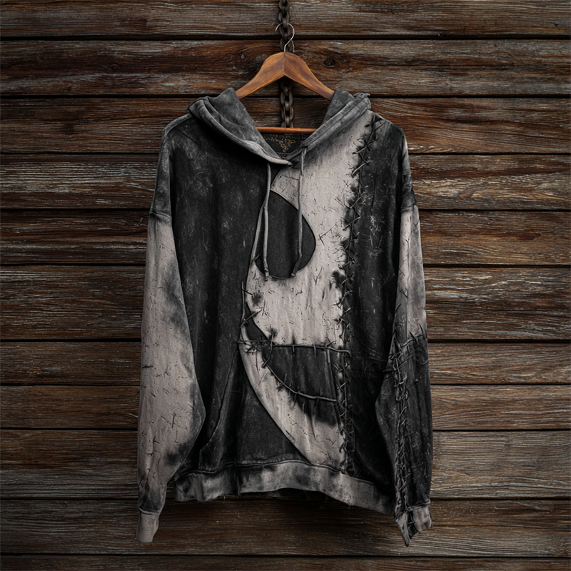 Halloween Spooky Face Contrast Patchwork Hoodie