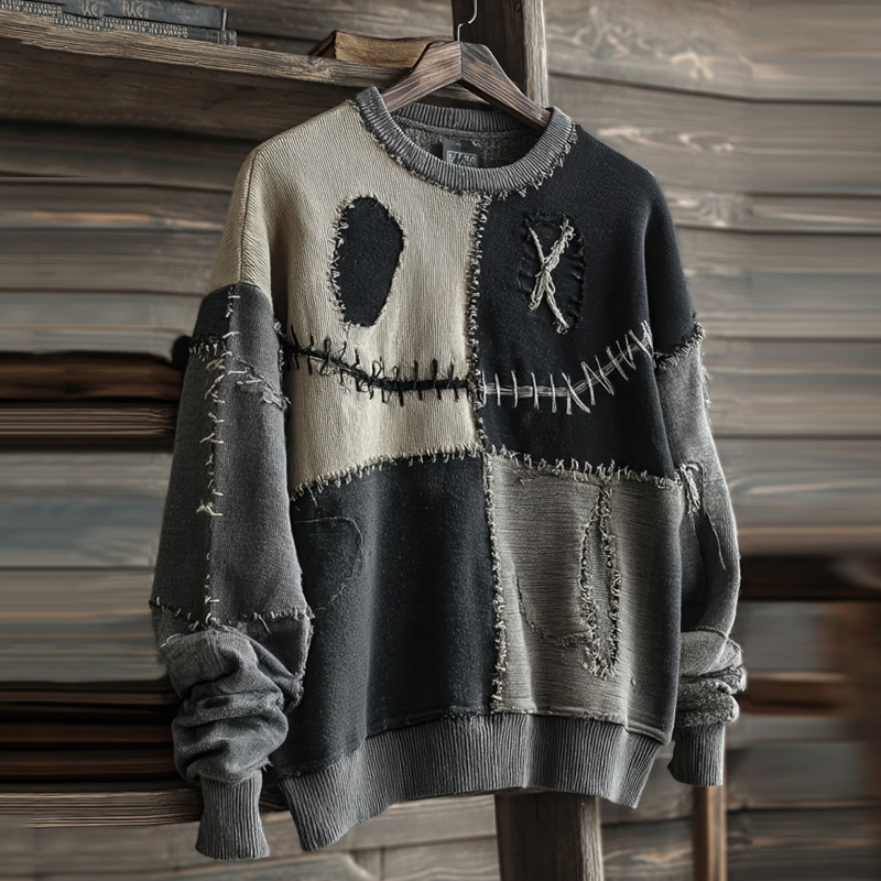 Men's Halloween Smiley Face Stitched Casual Warm Sweatshirt