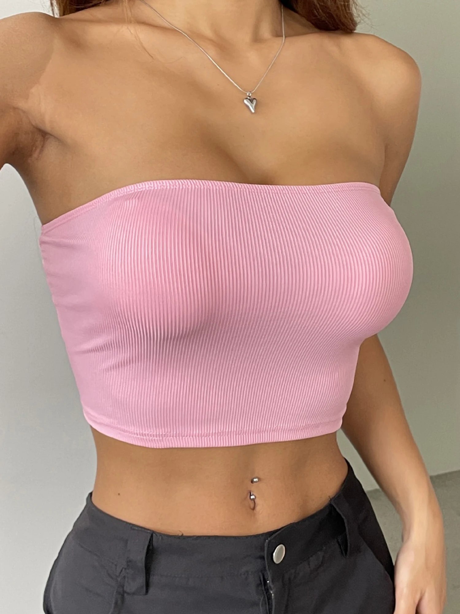 Solid Pink Tube Top for Women – Chic Summer Crop Top Outfit