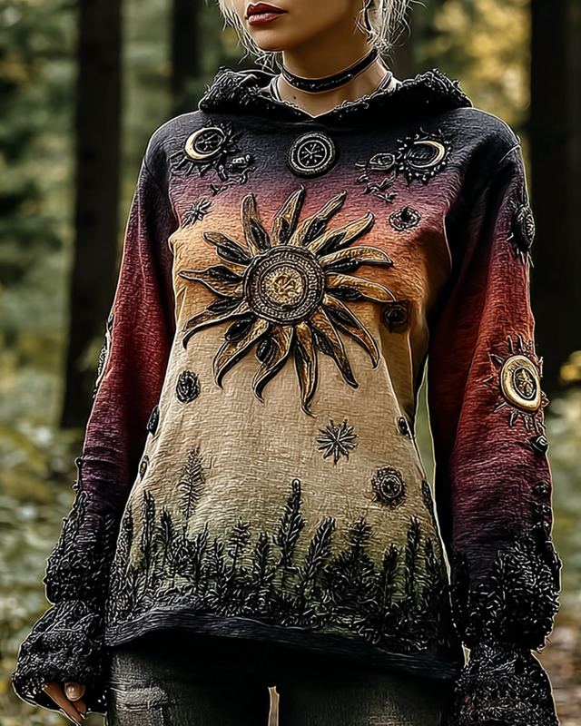 Star and Moon Theme 3D Embroidered Gradient Hooded Sweatshirt 50a4