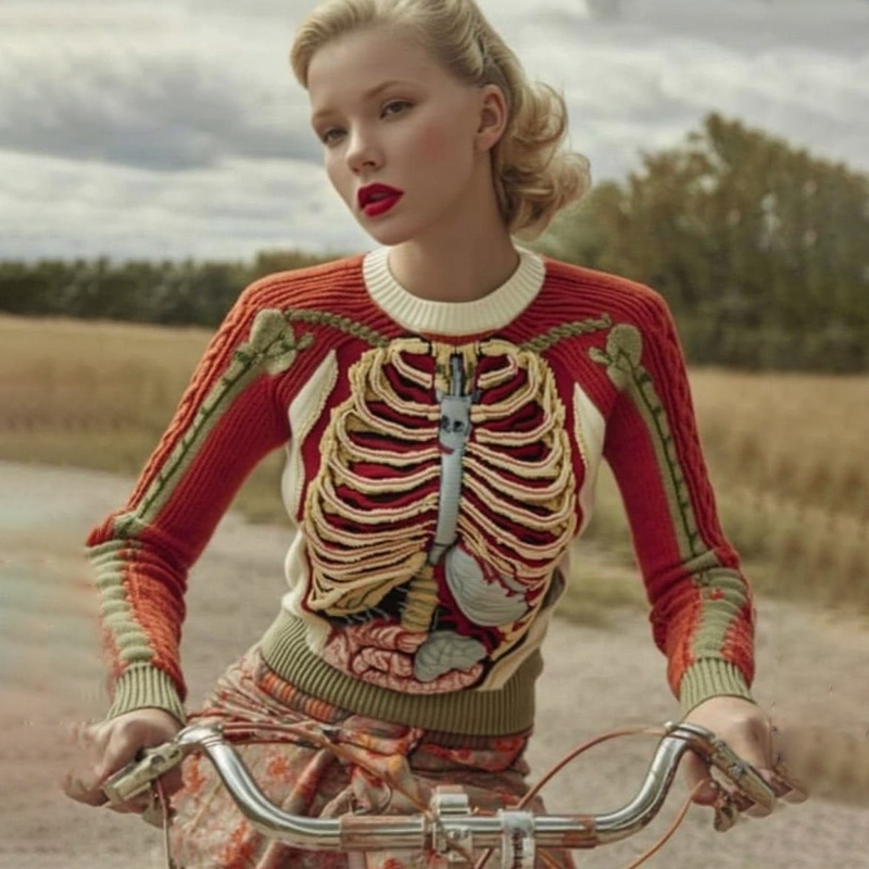 Vintage Halloween Anatomy Art Chunky Knitted Sweater