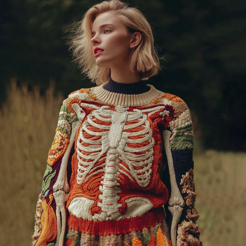 Vintage Halloween Human Anatomy Art Sense Thick Needle Round Neck Sweater