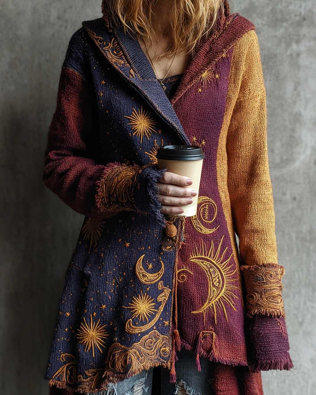 Women's Star and Moon Embroidery Contrast Color Stitching Cardigan 509d