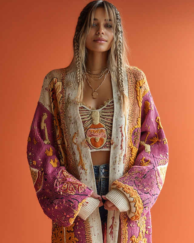 Women's Halloween Themed Human Skeleton Embroidered Gradient Cardigan d0a6