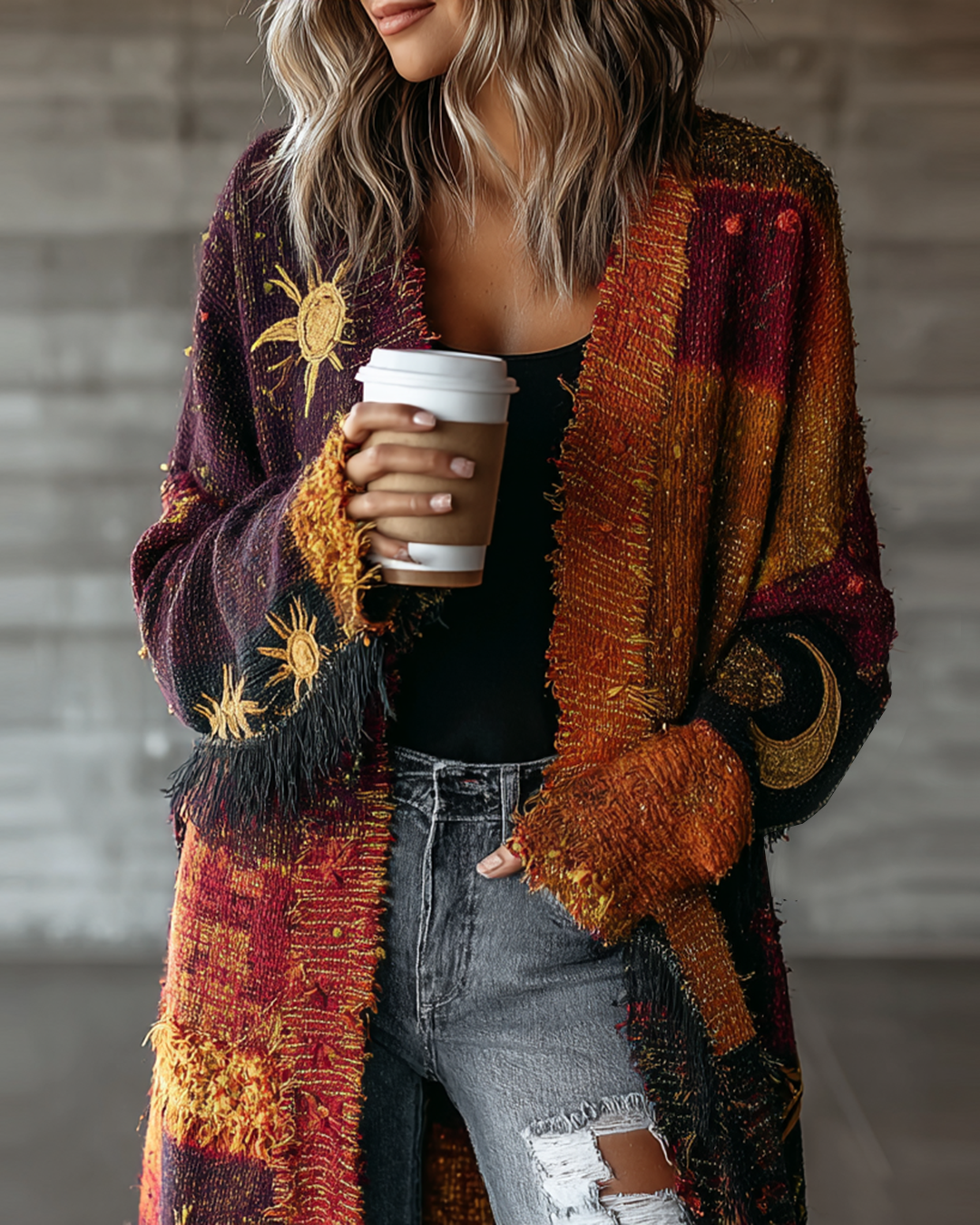 Women's Star and Moon Embroidery Contrast Color Stitching Cardigan fec9