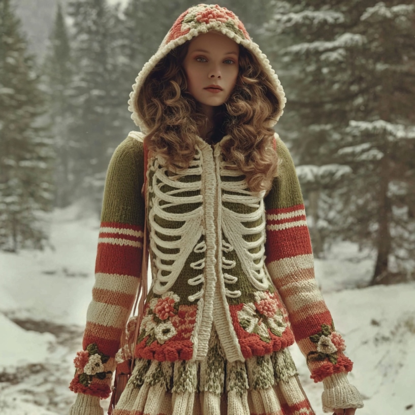 Women's Halloween Skeleton Pattern Knit Hooded Sweater Jacket
