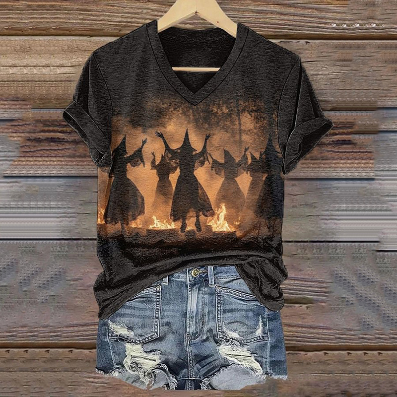 Women's Halloween Witches Of The Forest Print T-Shirt