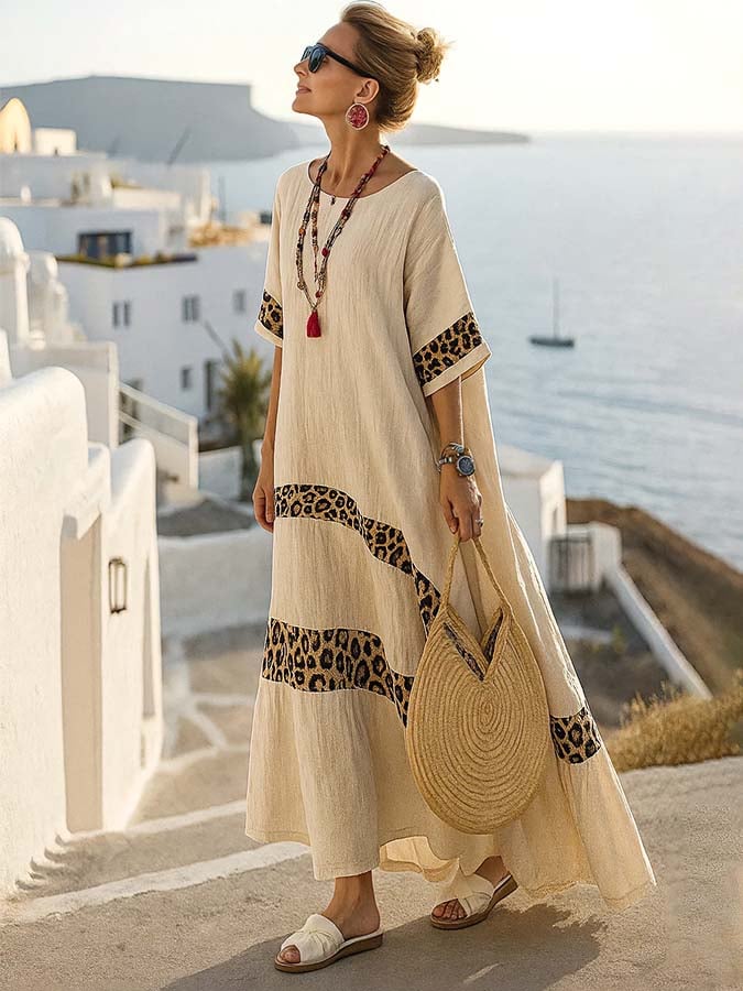 Women'S Loose Leopard Print Patchwork Dress