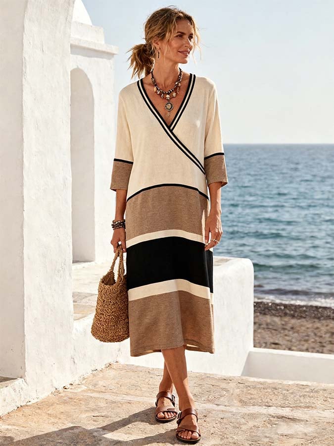 Women'S Loose Striped Print Dress