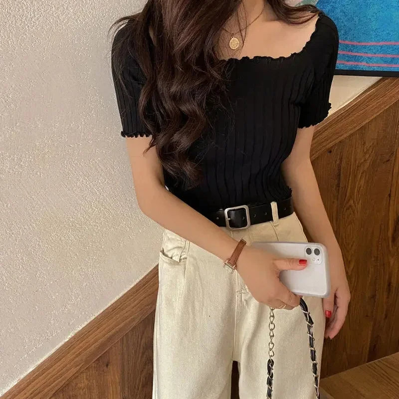 Stylish Crop Top for Women – Bodycon O-Neck Summer Outfit Tee