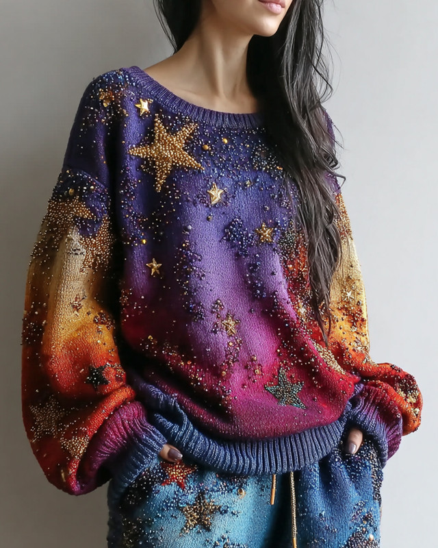 Women's star and moon embroidered sweatshirt 778c