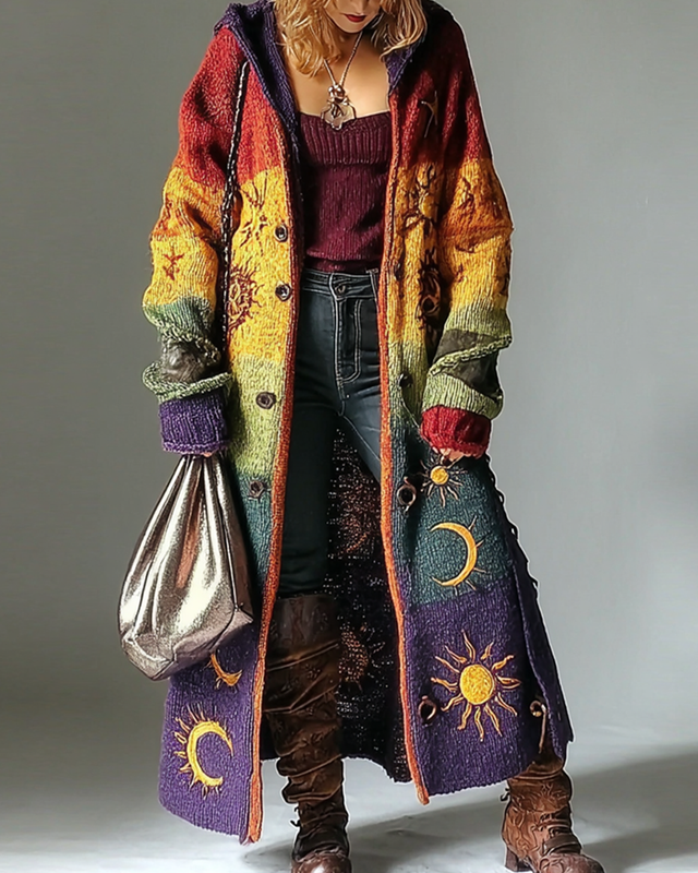 Women's Star and Moon Embroidery Contrast Color Stitching Knitted Cardigan 7676