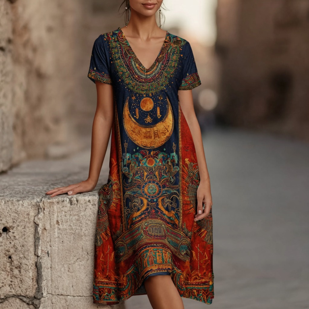 Women's Vintage Egyptian Tribal Art Short Sleeve Dress